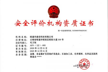 2003年11月10日,昭通市鼎安科技有限公司成立,初始主要從事第三方安全工程技術(shù)服務(wù),經(jīng)多年運(yùn)營,發(fā)展為多專業(yè)綜合科技平臺,為社會(huì)提供多種專業(yè)技術(shù)服務(wù)工作。 現(xiàn)公司注冊資金為1200萬元,公司法定代表人:毛衛(wèi)旭。公司主要業(yè)務(wù):安全評價(jià)、安全標(biāo)準(zhǔn)化評審、安全工程技術(shù)服務(wù);環(huán)境監(jiān)測、職業(yè)衛(wèi)生檢測、檢驗(yàn);法律訴訟及非訴訟服務(wù);司法鑒定、固定資產(chǎn)投資項(xiàng)目節(jié)能服務(wù);工程咨詢;工程測量測繪;安全教育培訓(xùn)等。是安全生產(chǎn)服務(wù)、安全教育培訓(xùn)機(jī)構(gòu),也是環(huán)境監(jiān)測和職業(yè)衛(wèi)生服務(wù)機(jī)構(gòu),同時(shí)也是綜合的檢測檢驗(yàn)、綜合科技平臺服務(wù)機(jī)構(gòu)。多年來為公、檢、法、司、軍、警、海關(guān)、仲裁、安監(jiān)、工礦商貿(mào)企業(yè)、社會(huì)團(tuán)體及個(gè)人提供多專業(yè)技術(shù)服務(wù)。